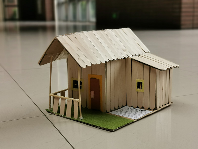 初二8班林芷伊同学制作的大兴安岭木屋。