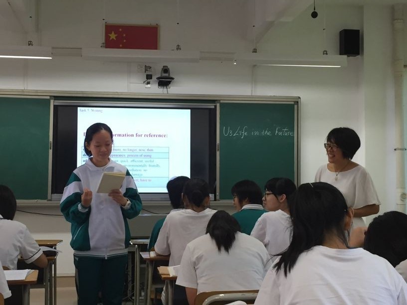 我校高中英语科教师聂桂花是广州市朱倩茵名师工作室成员,在本学期“名师工作室送教到校”活动中承担了公开课任务。公开课为高二Unit3 Life in the Future 中的Using the Language, 课型为以读促写。在高中阶段,培养学生的阅读和写作能力是重中之重,所以这一课型很受听课教师们欢迎。