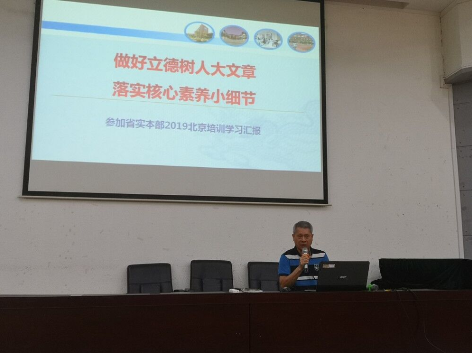 (江秋明副校长做《做好立德树人大文章,落实核心素养小细节》的报告)