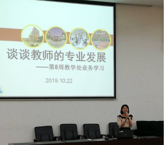 最后,教学处杨琼副主任为大家做了《教师的出路?——教师的专业化发展建议》的讲座,针对不同教龄的老师们提了很多宝贵的建议,引导教师们要做清晰的自我剖析与定位。她认为每一位老师都应该确立并维护好自己的专业形象与身份,说专业的话,做专业的事。教师并非只教知识,还要研究学生的认知规律,研究学生的身心发展规律。