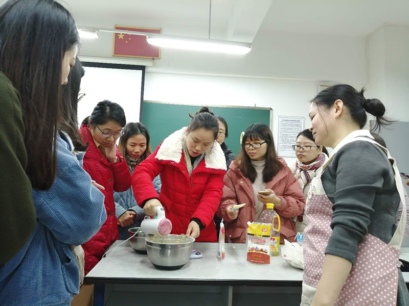 新年伊始,由省实附中工会组织的教职工美食班终于开班啦!1月2日、3日下午四点,在美食界“璀璨之星”邹丽华老师的带领下,生物实验室摇身变成烘培坊,老师们亲自制作曲奇饼和牛轧糖,满屋都弥漫着浓醇的香。一个个新鲜出炉的小点心被装入精致的包装袋,老师们享受其中、一起品尝,乐在其中,一起分享。