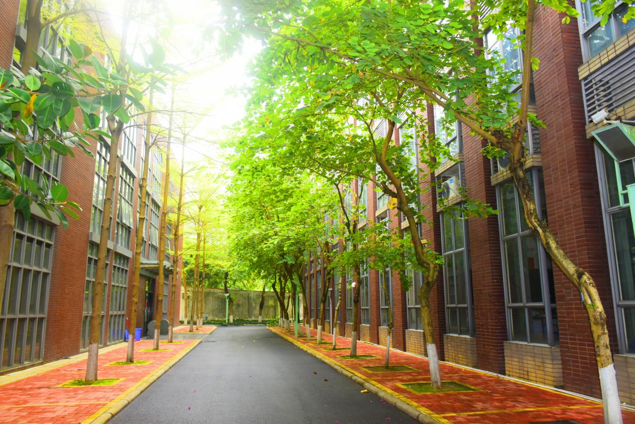 校道,是环绕学校的步道,其间有绿水、青竹、红花、赤土。有朗朗书声,有沓沓步声,也有喵喵叫声。