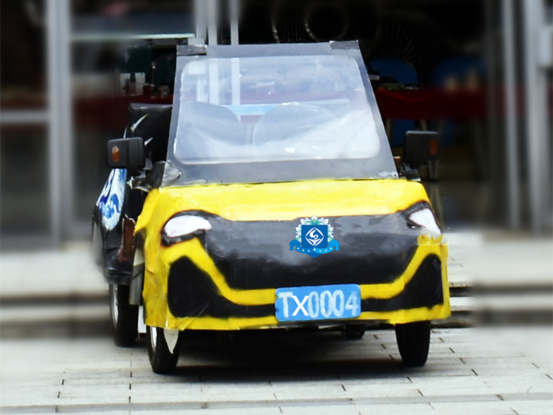 Here comes an eco-friendly car designed and developed by our high school students, which runs completely on electricity while still up to a speed of 45 km/h and better still, with an audio control system. The seats of the car are made with the materials of the damaged desks and chairs in classrooms and the main body is supported by the wooden boards which were once parts of the beds in the dormitories. Every piece of metal comes from all kinds of wasted materials.