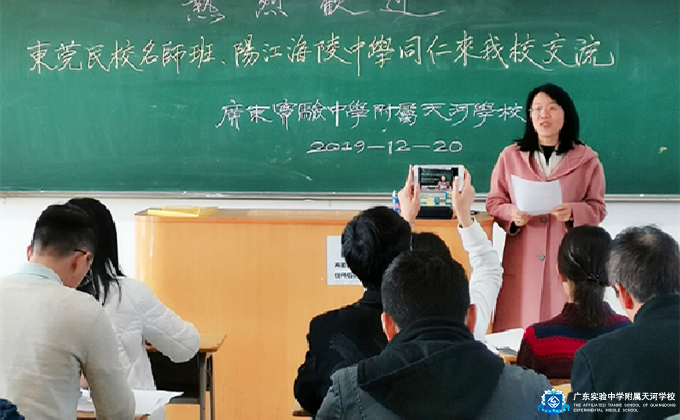 有朋自远方来,不亦乐乎!12月20日,东莞民办学校初中名师班、阳江海陵中学领导和骨干教师一行72人到达我校交流学习,受到了省附师生的热情欢迎。深冬的广州艳阳高照,三地初中骨干教师共享了一场场“精神盛宴”,既有同课异构研讨课,又有教育教学管理经验分享,场场都是“大餐”!