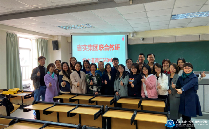 在全汉炎校长“教研兴校、内涵发展、整体优化”的思想引领下,为了更好地促进省实集团教师专业化发展,提升教师的教学教研水平,提高初中道德与法治学科教学质量,加强校区间教育教学联动、优质资源共享,打造优质高效课堂。12月4日上午由省实本部牵头在省实天河校区开展了主题为“凝心聚力共教研,砥砺前行谱新篇”的省实集团各分校初中道德与法治教师的教学研讨交流活动。省实天河校区的何超老师和李海霞老师,承担了本次联合教研的公开课任务。两位老师经过精心准备,立足学生实际,教学设计精巧,教学情境和探究活动设计合理,整个教学过程贯彻一体式教学,充分体现“学生为主体,老师为主导”的教学理念,取得了良好的教学效果,为初中道德与法治学科教学做了一个很好的示范。