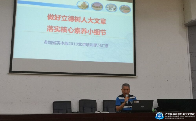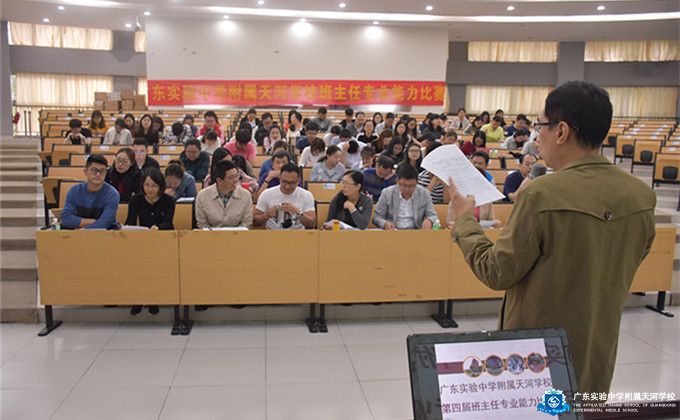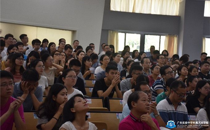 2019年10月22日下午16:00广东实验中学附属天河学校教学处组织全体教学教师约260人在报告厅开展了题为“谈谈教师的专业发展”的业务学习活动。会上,江秋明副校长首先做了题为《做好立德树人大文章,落实核心素养小细节》的报告,分享了考试改革对高中教学,高中课程体系和高中学生素养提出的新要求;建议老师们要从小细节着手培养学生的核心素养,立德树人。之后,教学处潘浩主任对《广州市初中学生综合素质评价实施办法试行》做了详细的解读,综合素质评价是促进素质教育落地的重要举措,有利于学生的全面发展。