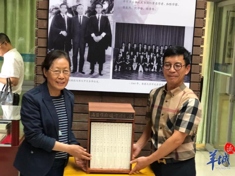国学大师饶宗颐先生学贯中西,10月21日下午,广东实验中学附属天河学校在饶宗颐图书馆举行了《饶宗颐教授在香港大学的16年》展览开幕式。饶公的女儿饶清芬向图书馆捐赠了《饶宗颐书道创作汇集》著作一套十二册。