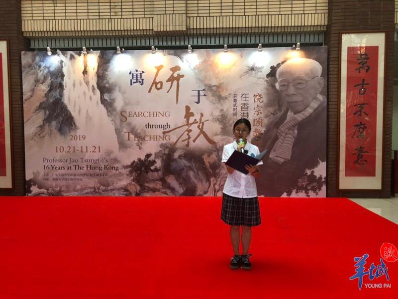 开幕式结束后,陈韩曦在省实附中报告厅为师生做了一场精彩的《东方文化坐标——饶宗颐的故事》讲座。向同学们介绍饶宗颐从韩江走向世界的整个过程及其为弘扬中华民族优秀传统文化做出的贡献,并穿插讲述了这位国学大师背后许多鲜为人知的有趣故事,全场师生都被深深吸引,时而鸦雀无声,时而掌声雷动。(更多新闻资讯,请关注羊城派 pai.ycwb.com)