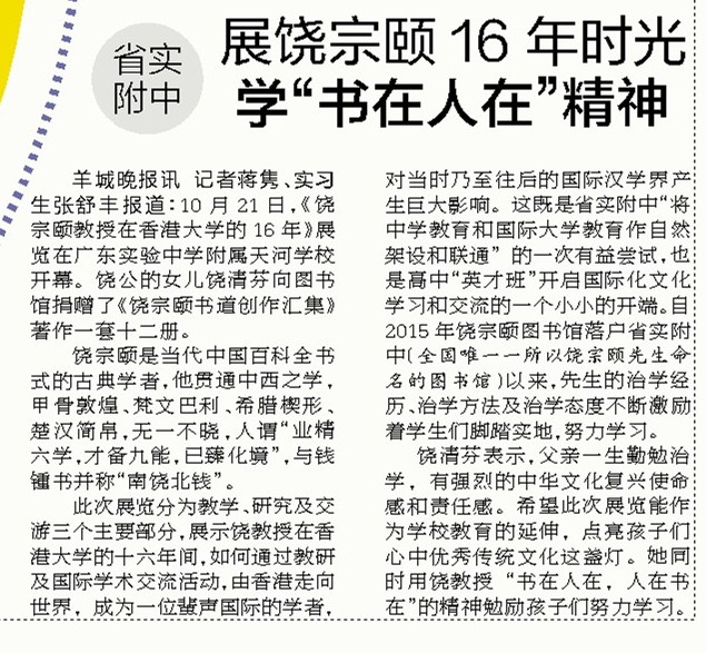羊城晚报:饶宗颐16年时光,学书在人在精神