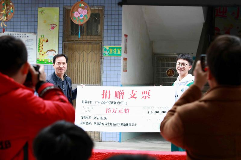 11月30日,广东实验中学附属天河学校将师生们自发捐款的10万元用作设立“华南教育历史坪石研学基地怀旧基金”,又由学校捐赠30万设立“华南教育历史坪石研学基地教室修缮基金”。据悉,“怀旧基金”将以2000元/户的现金形式反馈给曾哺育过当年坪石师生的、以及支持研学基地建设的50户当地村民及其后代;“修缮基金”将致力于研学基地的建设,助力华南教育历史的传承与发展。