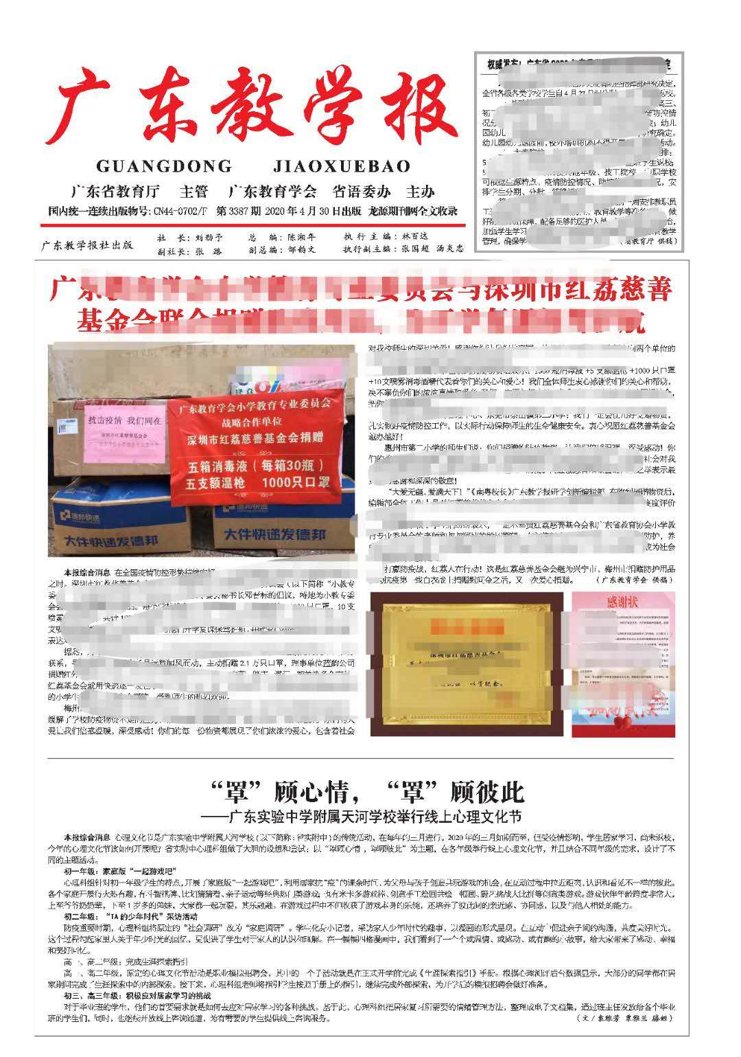 “罩”顾心情,“罩”顾彼此——省实附中举行线上心理文化节(广东教学报)
