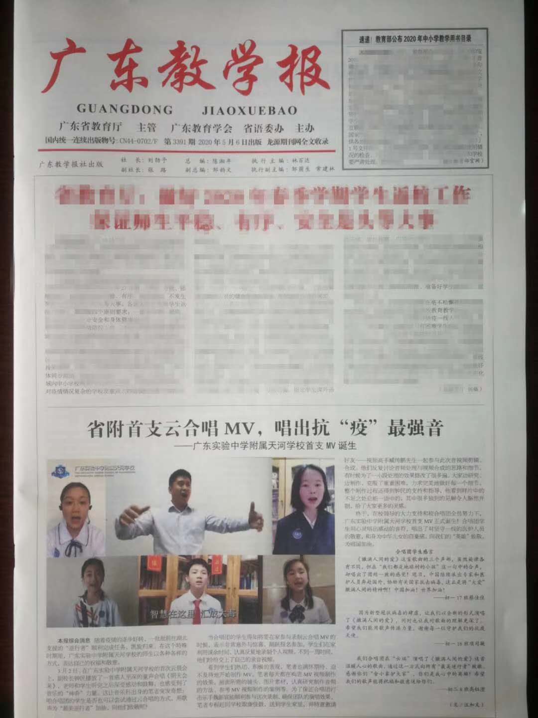 省附首支云合唱MV,唱出抗疫最强音(广东教学报)
