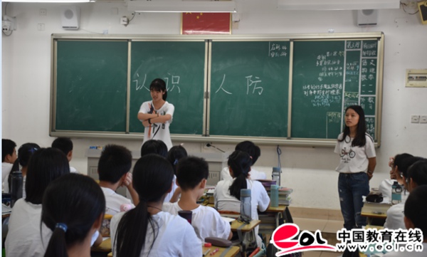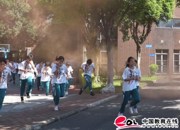 赠送环节结束后,主持人宣布广东实验中学附属天河学校正式进入防空疏散演练。初二年级8个班师生有序回到各自教室,边听班主任介绍演练注意事项,边等待预警警报的指令。