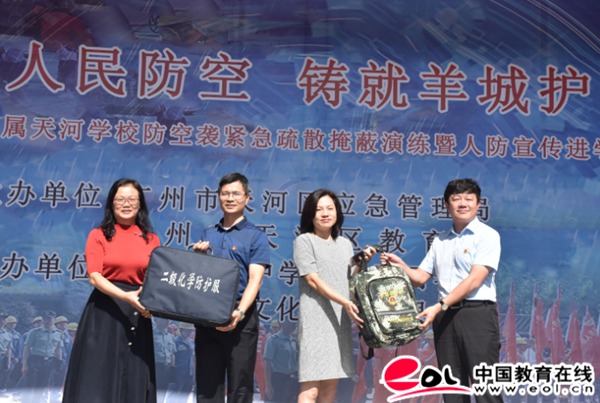 中国教育在线讯 9月20日上午,由广州市委军民融合办和市教育局主办、天河区人防办和区教育局协办的“防空袭紧急疏散掩蔽演练暨人防宣传进学校现场活动”在广东实验中学附属天河学校举行。天河区人防办、区教育局领导,广东实验中学附属天河学校领导等参加了这次活动。