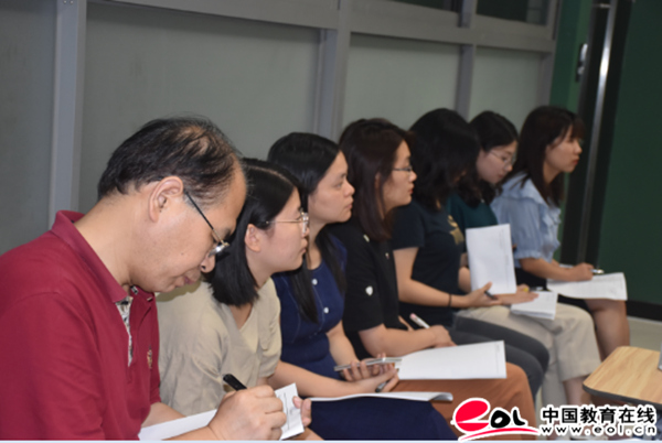 而独处一隅的高中2019级英才班的课室,则灯光通明,掌声和笑声不时传过来——这是他们的班会课时间。恰逢国庆前夕,英才班班主任莫道明教授亲自召开了一堂爱国主义主题班会,并做了“美﹒爱﹒责任,家国天下”主题报告。省实附中初、高中各年级班主任全体出席,进行观摩学习。