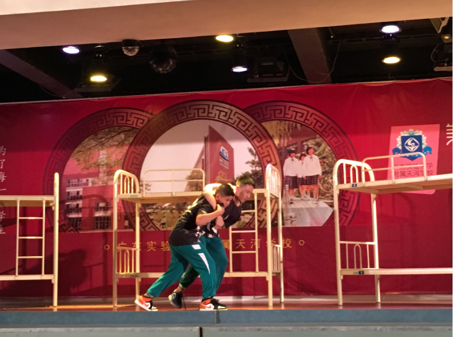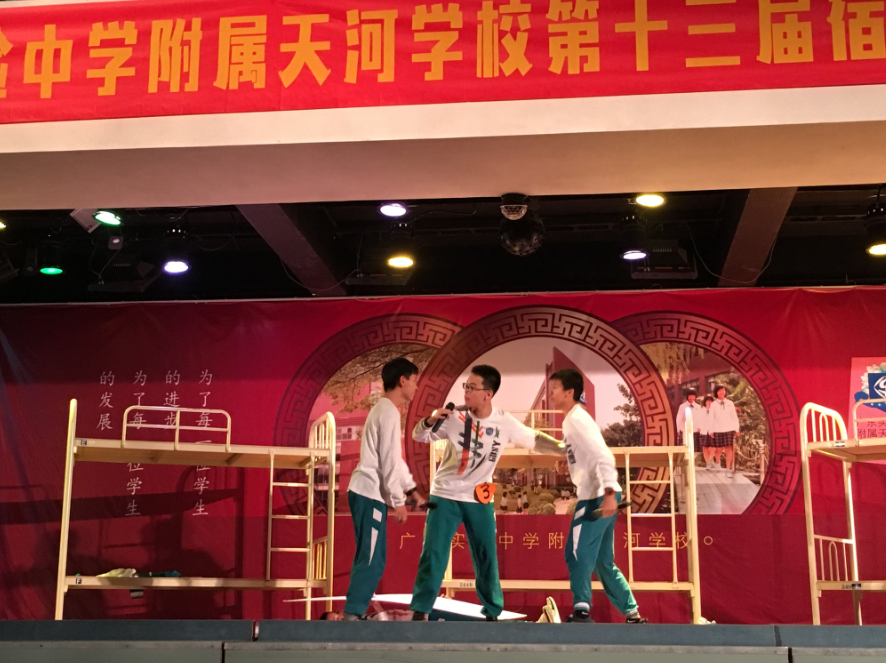 各班表演的故事围绕学校生活展开,题材广泛,从编写剧本到挑选演员再到导演、编排、表演,都是由学生主导。他们的精彩表演获得的满堂喝彩!大赛获得了学校领导的一致好评,钟民副校长和黎卓明主任分别对大赛做了点评,黎主任还亲身示范,把对戏剧的了解与同学们一同分享。大赛最终评选出一等奖两名、二等奖3名,三等奖4名,另外还评选出最佳剧本、最佳导演和最佳演员。