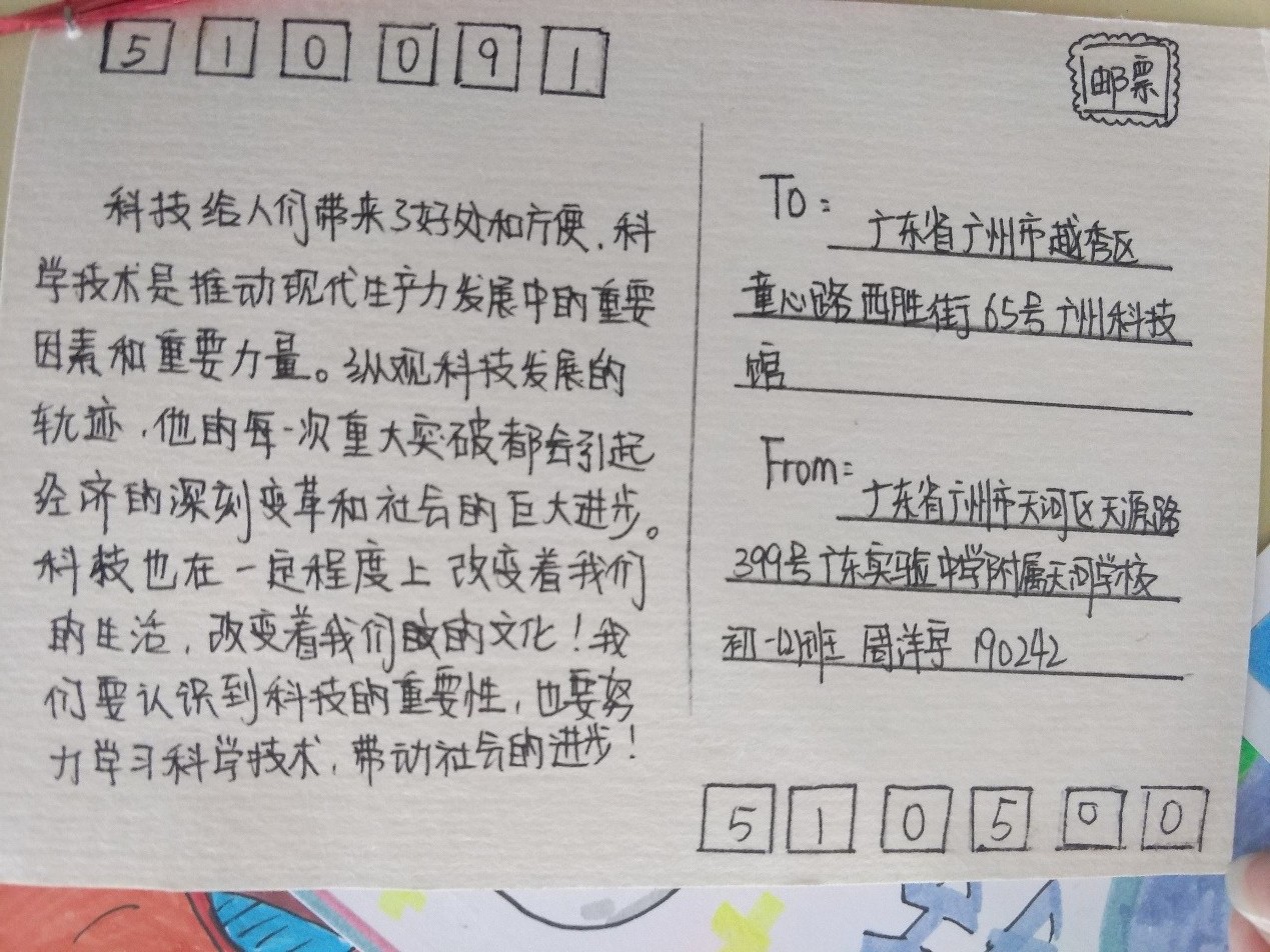 为培养学生的创新和节能环保意识,锻炼他们的语言运用能力,我校初一语文备组带领同学们开展了科技主题明信片制作活动,在科学和语文之间搭起了一座桥梁。