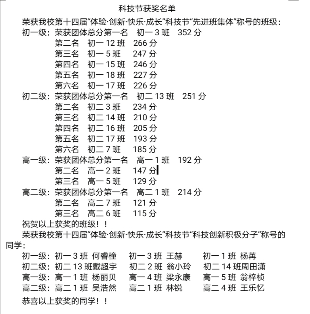 (科技节先进班集体)