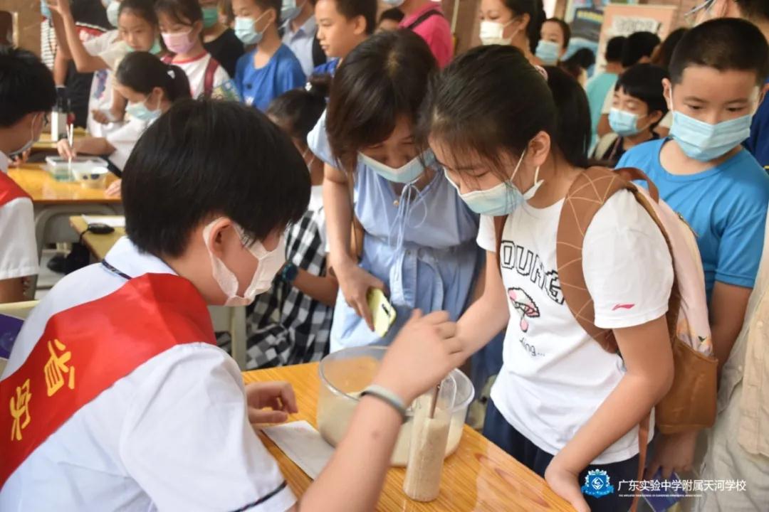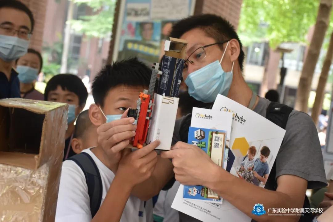 9月19日早上,朝阳刚刚升起,广东实验中学附属天河学校(简称“省实附中”)门口就排起了“长龙”,家长们带着孩子从四面八方赶来,参加广州市天河区青少年科技创意与发明大赛终评展示暨省实附中科普基地开放日活动。