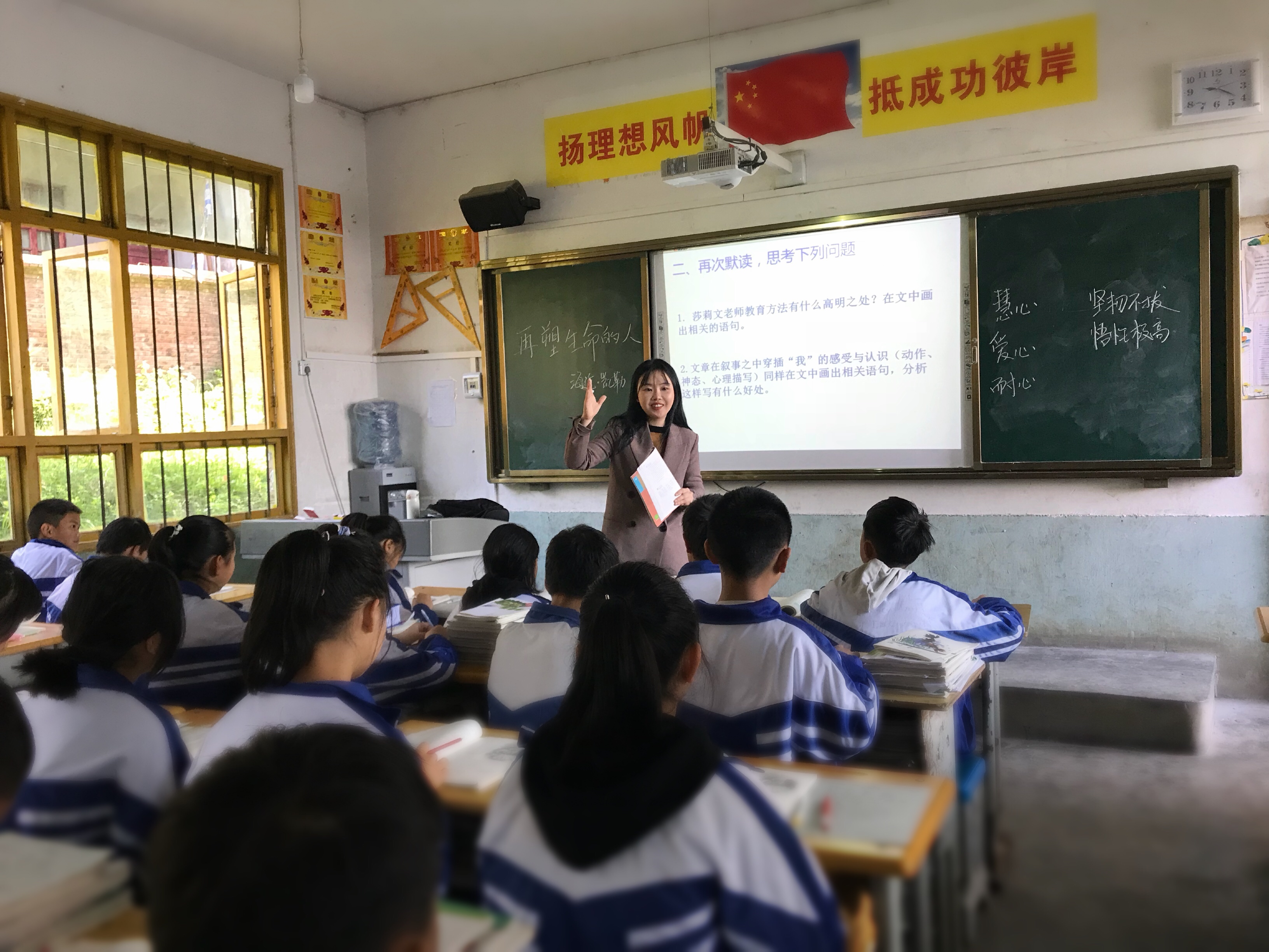 备课的时候,我就在思考一个问题,这节课的教学目的是什么?我想让他们认识到外面的世界是什么样的,在心灵上带给这些孩子们某些积极的东西。于是,我便朝着这个方向设计了这一堂英语课。整堂课下来,尽管口语并不流利,发言略显羞怯,但是在下课后,孩子们都异口同声地表示会努力学习,争取考到广州读大学。那一刻,我真的觉得不枉此行,期待他们都能实现自己的梦想。
