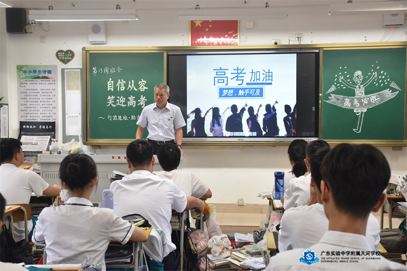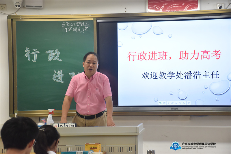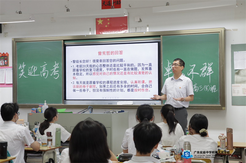 高考不仅是一场智慧的竞赛,也是一场心理的竞赛。为了帮助考生调整心态,克服紧张焦虑,高效备考,在5月17日早上第一节班会课上,我校行政领导在常务副校长黄冬玲的带领下,深入高三年级各班,用他们的阅历、格局、眼界、智慧为高三学子们解疑答惑、指明方向、加油鼓劲。