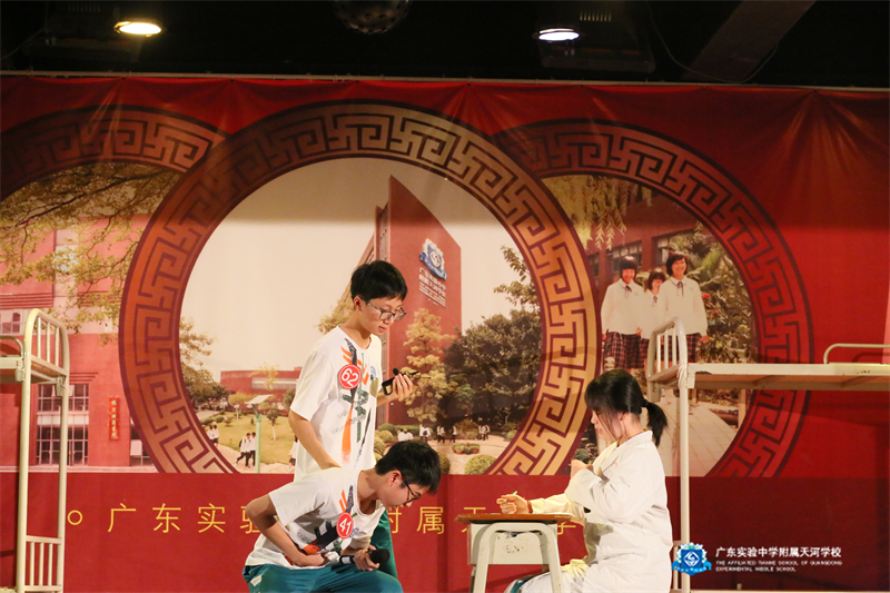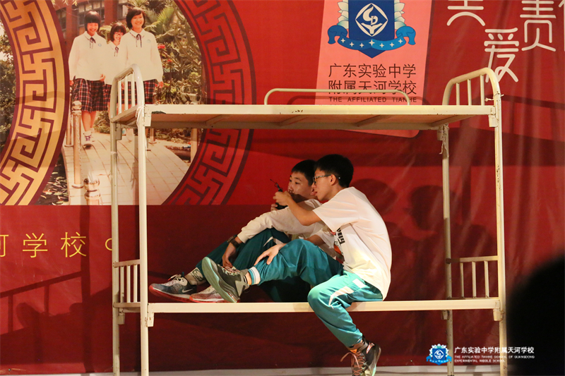 初二八班何玟羲:演员们在台上生动地演绎着一幅幅生活画卷,让我们捧腹大笑之余,又陷入深思。这一个个生活片段,汇成了宿舍生活的完整拼图:老师每天都细心地检查我们的内务,并且教导我们不管遇到什么困难,都要勇敢面对;舍友们总会在晚上睡觉时互道一声晚安,总会在别人遇到困难时给予安慰……这一切都体现着爱与责任和人间真情,让我学会了珍惜。