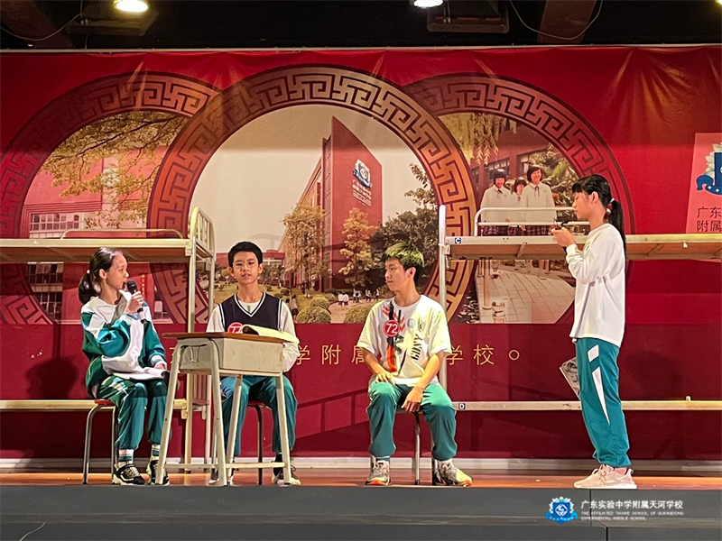 初二11班李雨彤:台上的小演员们给了精彩的演绎,台下的后勤人员给了兢兢业业的支持。同学们之间相互配合、团结协作,每一个人都在努力为班级争光,这种团体精神让我感动。希望天省学子日后都能延续这种团结精神,认真对待每一处细节,能够走上更大的舞台,展现自己的光彩。