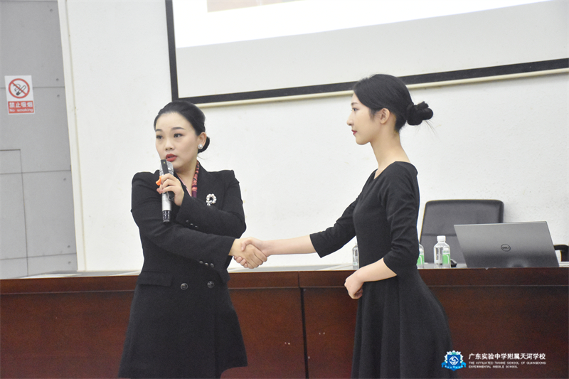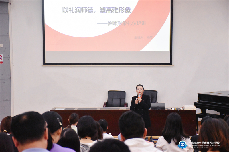 为全面提升教职工文明礼仪素养,塑造师者风范,10月19日下午,广东实验中学附属天河学校(简称:天省)邀请国际高级礼仪培训师杨芳,为全体教职工做了一场《以礼润师德,塑高雅形象》教师形象礼仪专题培训讲座。