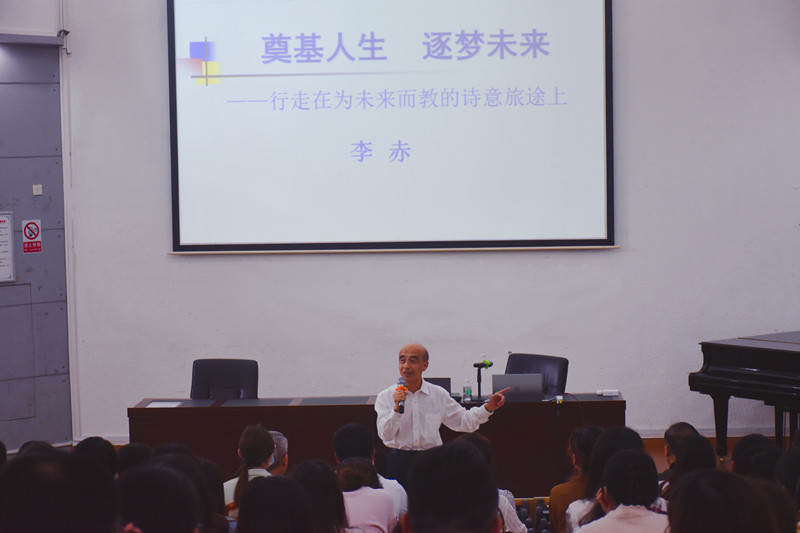 为了促进教师综合素质全面发展,提升职业幸福感,10月26日,我校邀请国务院政府特殊津贴专家、教育部国培计划首批名校长名教师领航班导师李赤老师,为全体教师做了一场题为《奠基人生,逐梦未来——行走在为未来而教的诗意旅途上》的专题讲座。