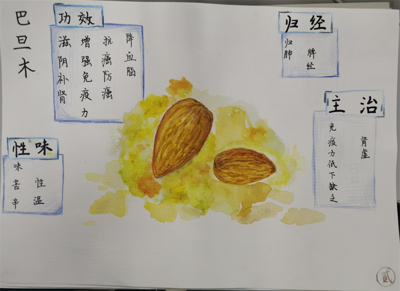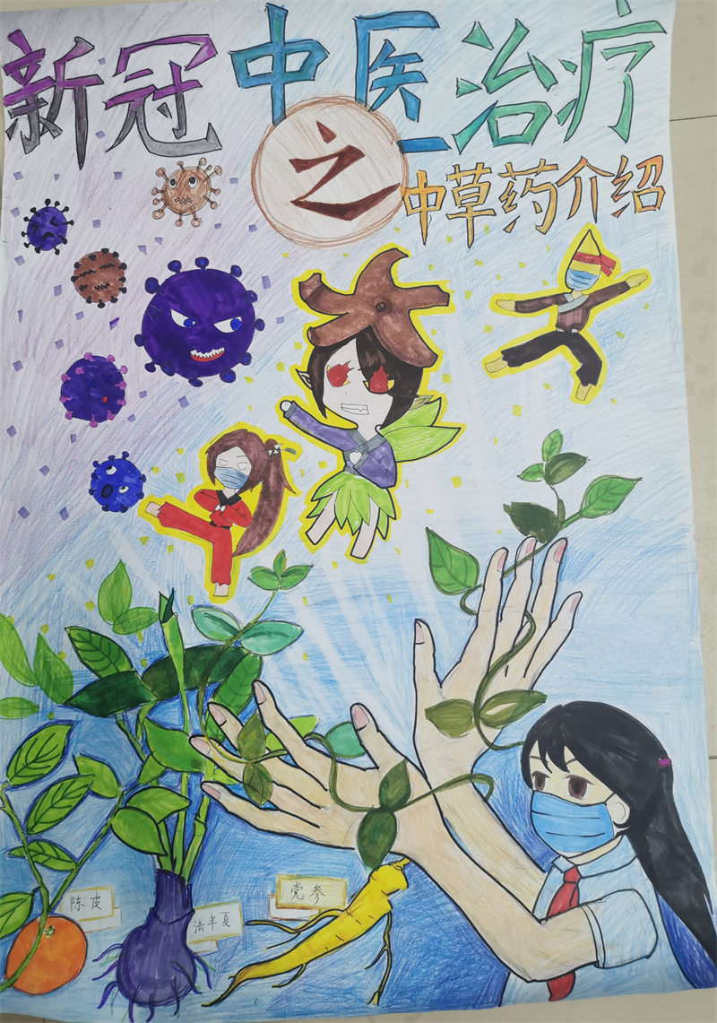 面对反反复复的疫情,三个小姑娘商量:何不做一册宣传画,给大家普及一下中草药在新冠肺炎救治中作用的知识?说做就做,在生物老师莫海珠、美术老师何敏沂的指导下,三人查阅资料,分工协作,用画笔和颜料,生动传神地描绘了法半夏、砂仁、附子、党参、陈皮、瓜蒌、巴旦木、藿香、山茱萸等的形状,并标注上各自的功效主治,一册《新冠中医治疗之中草药介绍》宣传画完成啦!精美的图片加上精确的文字介绍,让人赏心悦目。