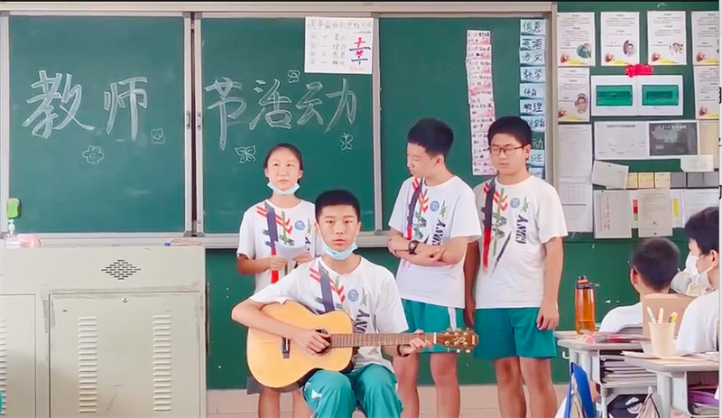 “老师,教师节快乐!我们爱你!”教师节前夕,初二14班班主任杨艳婷老师刚推开课室大门,就收到了学生的祝福。杨老师感动地说,看到一张张笑脸,听到一声声祝福,那一刻一股暖流涌上心间,平日再忙再累,都值了!