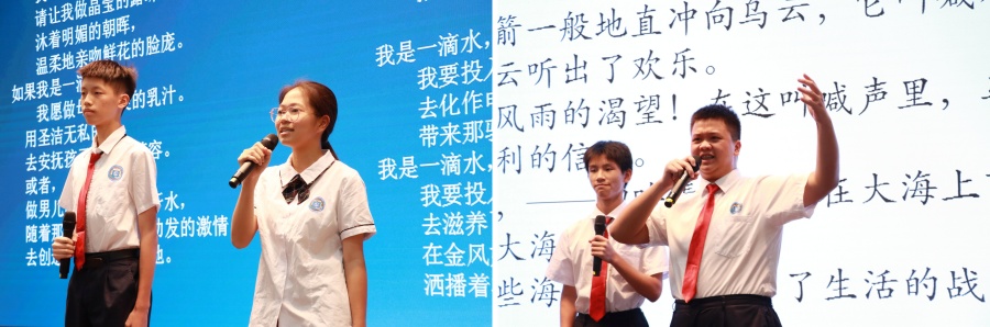 朗诵经典,浸润心灵;书写经典,翰墨飘香。10月份,高一学部语文教研组精心组织了主题诗歌朗诵比赛,初、高中语文科全范围开展了规范汉字书写大赛,一首首和生命相关的诗歌,一句句震撼人心的青春朗诵,优秀文学的魅力和智慧在师生的心中荡漾开来,让每个人都感受到生命的激扬。