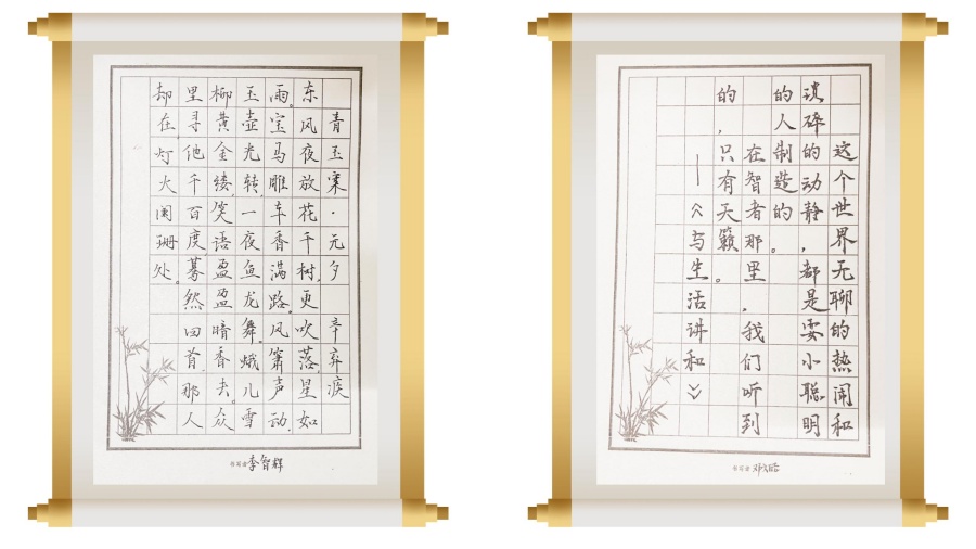 全体学生积极参与,同学们的作品风采各异,有的端庄大气,有的苍劲有力,展示了天省学子的扎实书写功底。在本次比赛中获奖的作品,将有机会被推荐参加天河区第十四届规范汉字书写大赛。